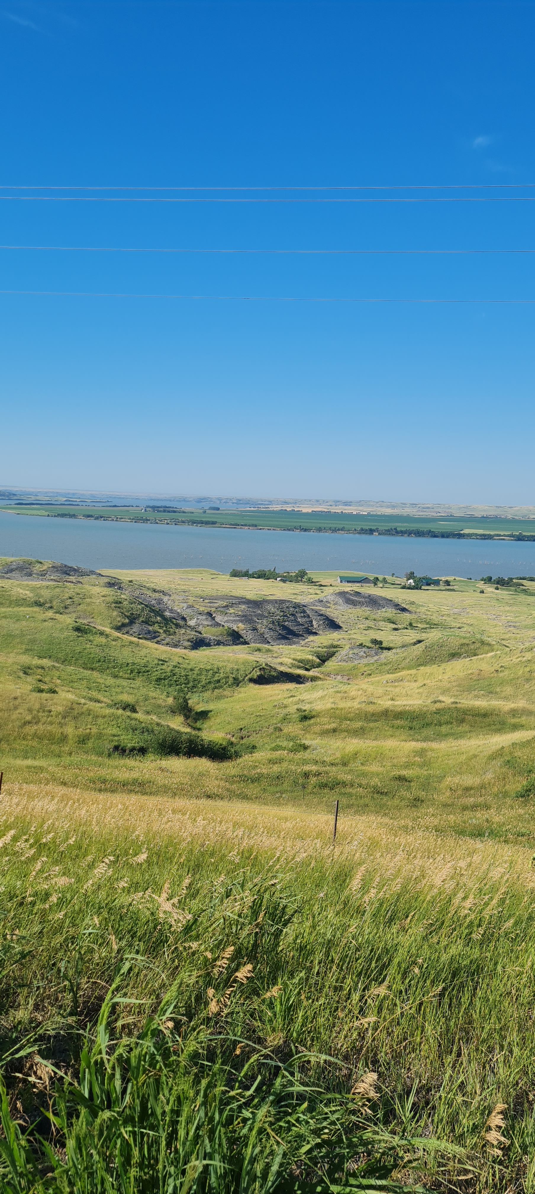 Et ce matin, de retour en selle pour ce qui devait être une journée facile (123 km et +639m de denivelé). Des que nous sommes sortis de Pierre, avec le fleuve Missouri sur notre droite, nous nous sommes enfoncés dans l’Amérique profonde : • Des cultures de blé, de maïs, de patates à pertes de vue • Des bottes de foins qui attendent d’être rentrées • Quelques troupeaux de bétail et des chevaux • Quelques véhicules sur notre route • 1 seule station essence / supérette après 48 miles • Quelques fermes isolées • Aucun village pendant 123 km