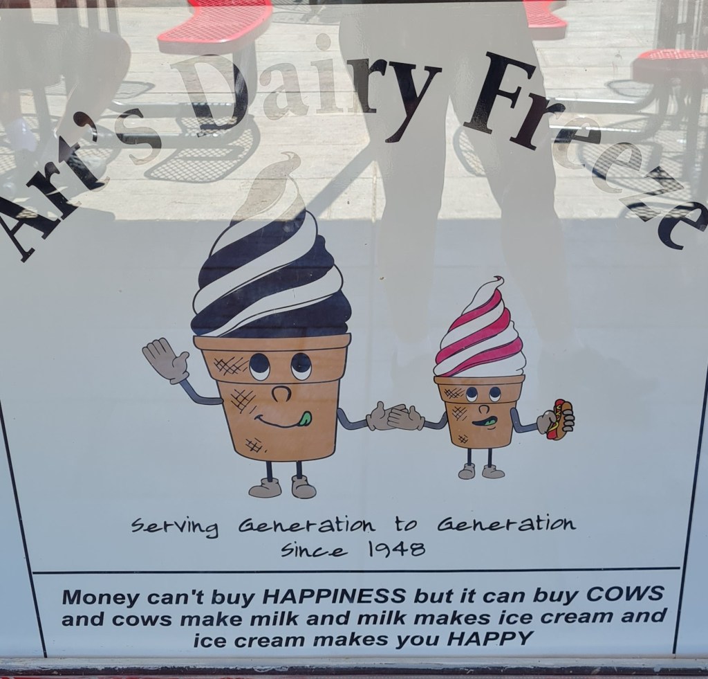 Le Minnesota nous a super bien accueilli puisque 2 miles avant l’école de Montevideo qui nous héberge ce soir, nous avons pu déguster un malt-shake (tu remplaces le lait par du malt) : super BOOON ! et surtout une de leurs affiches m’a bien fait sourire. Je vous la mets ci-dessous. Belle journée à vous tous.